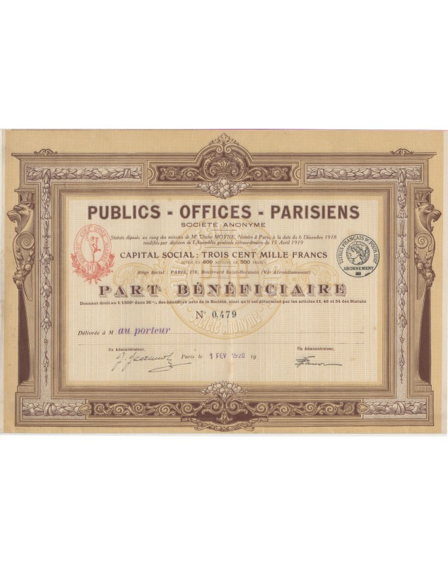 Part Bénéficiaire - Paris 1920