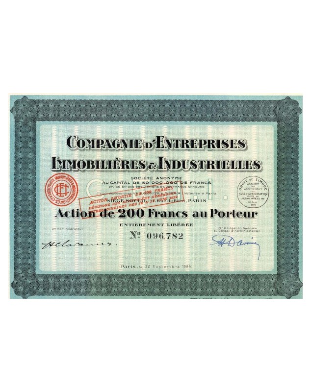 Action de 200F - Paris 1929
