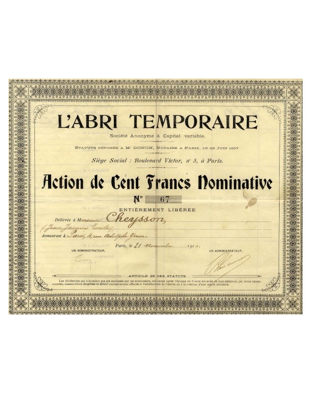 Action de 100F - Paris 1910