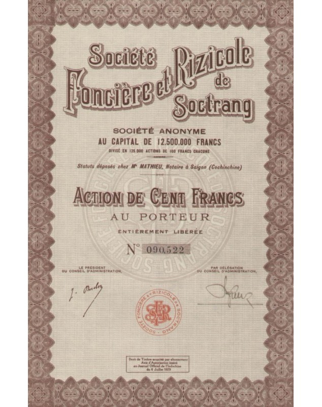 Action de 100F - Saïgon 1929