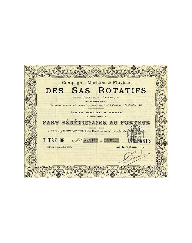 Part Bénéficiaire au porteur émise à Paris en 1897.