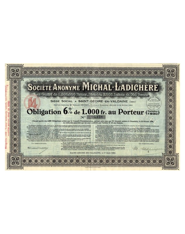 Oblig. 6% de 1000F - St-Geoire-en-Valdaine 1922