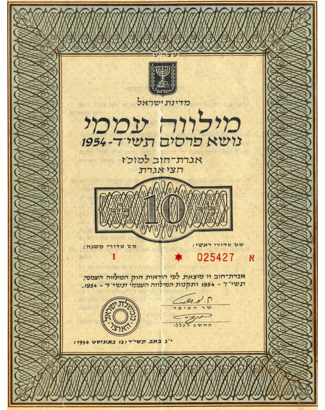Emprunt d'Israël de 1954 - Obligation avec vignette de la Menorah