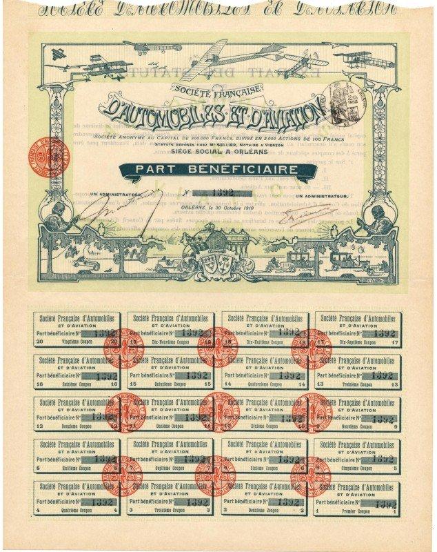 Superbe décor illustré d'avions et d'automobiles par R. Vallette, et blason d'Orléans.