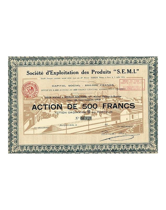 Action de 500F - Neuilly-sur-Seine 1925