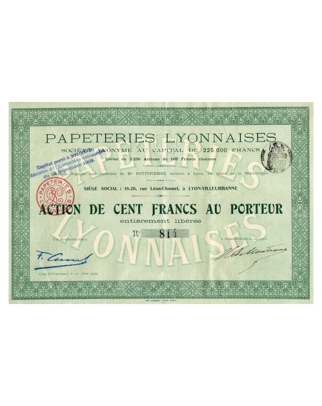 Action de 100F - Lyon-Villeurbanne 1909