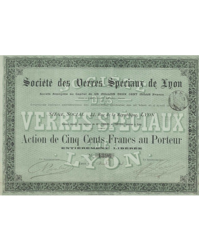 Action de 250 francs au porteur mise à Lyon en 1900.