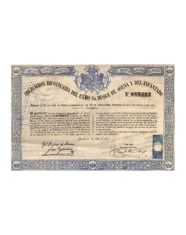 Obligacion Hipotecaria del Exmo Sr. Duque de Osuna Y Del Infantado