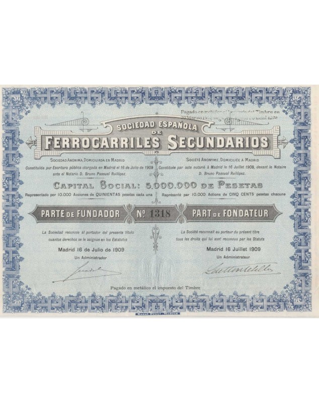 Part de Fondateur - Madrid 1909