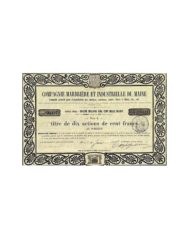 Titre de 10 Actions de 100F Série C - Paris 1857