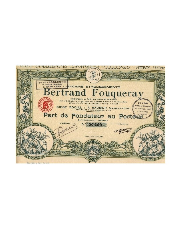 Action ordinaire de 100 francs au porteur émise à Saumur 1930.