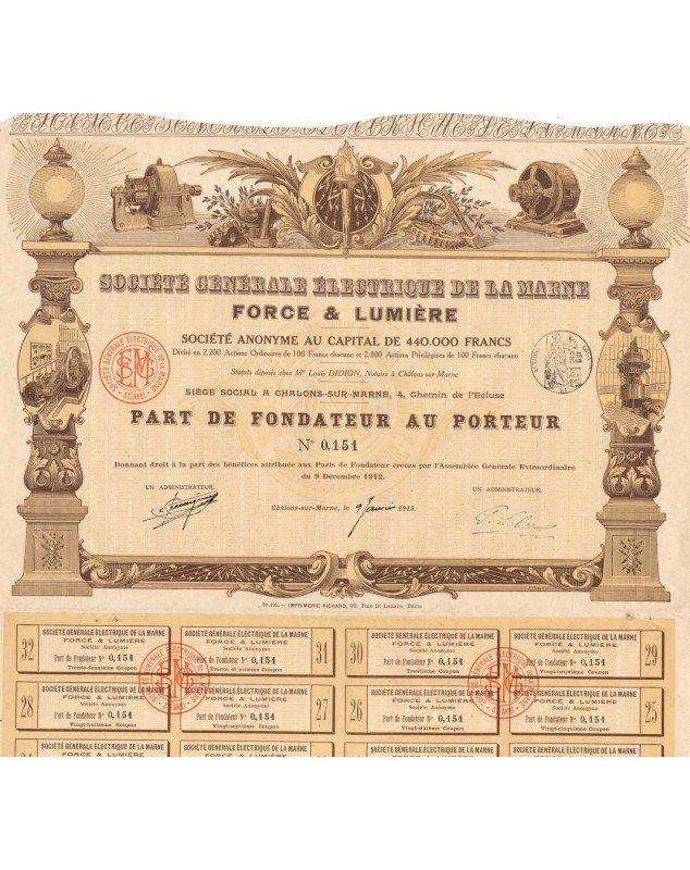 Part de Fondateur émise à Châlons-sur-Marne en 1913.