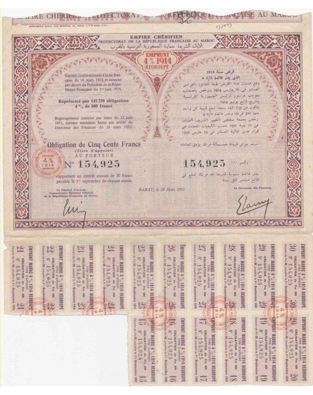Obligation 4% de 500F - Rabat 1952