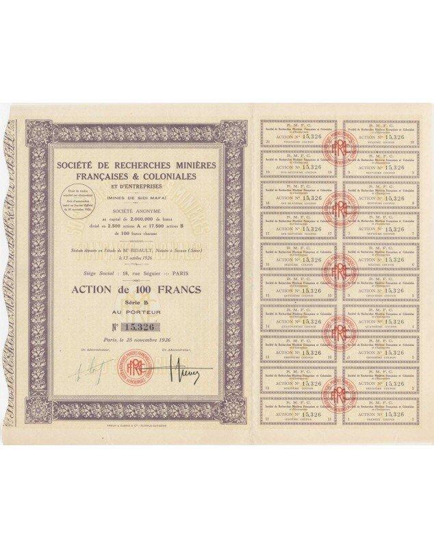 Sté de Recherches Minières Françaises & Coloniales (Mines de Sidi Mafa)