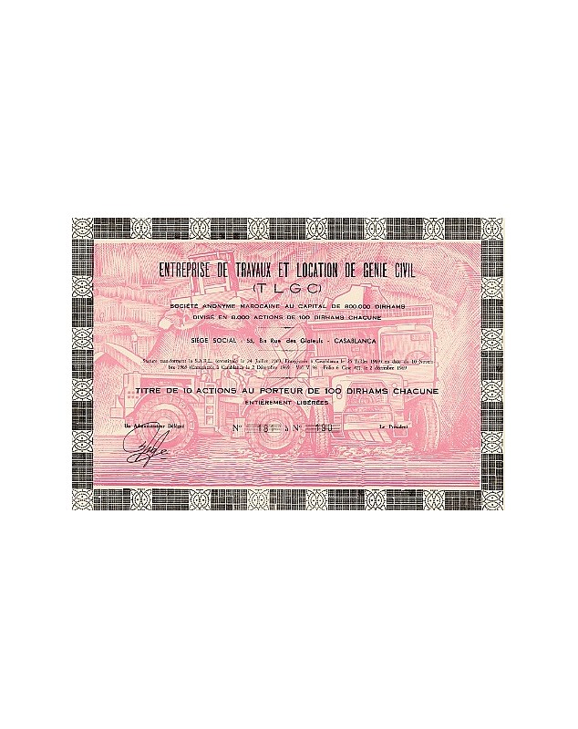 Titre de 10 actions de 100 Dirhams chacune - Casablanca 1969