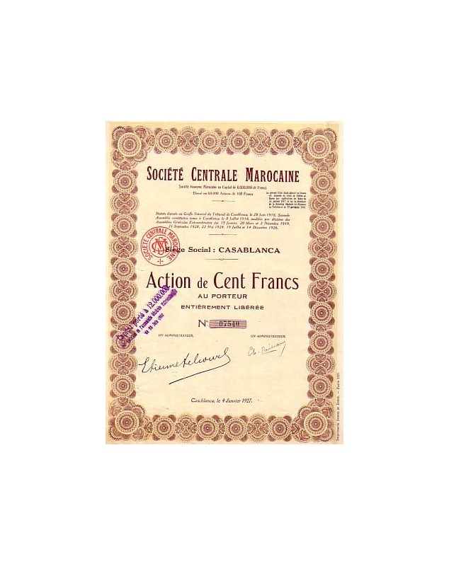 Action de 100F - Casablanca 1927