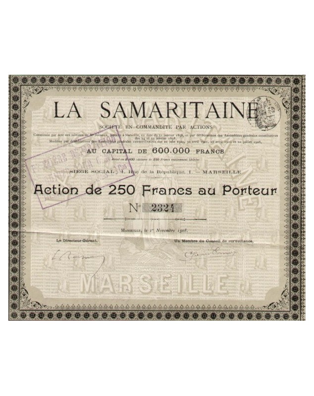 La Samaritaine est située 2 Quai du port, avec une belle vue sur le vieux port face à la Bonne Mère. Le siège social était initialement situé 1 rue de la République.