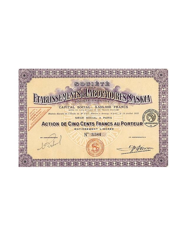 Hauts de Seine 92 Sté Générale de Produits Chimiques de Clichy-la-Garenne, A.M. de Glimes & Cie60,00 €