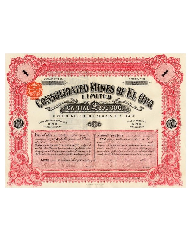 Consolidated Mines of El Oro Ltd (Mexique) 1911