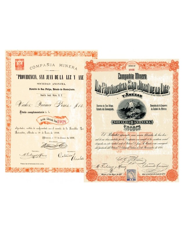 Action avec Titre complémentaire (daté de 1898) de 15 Pesos - Mexico 1897
