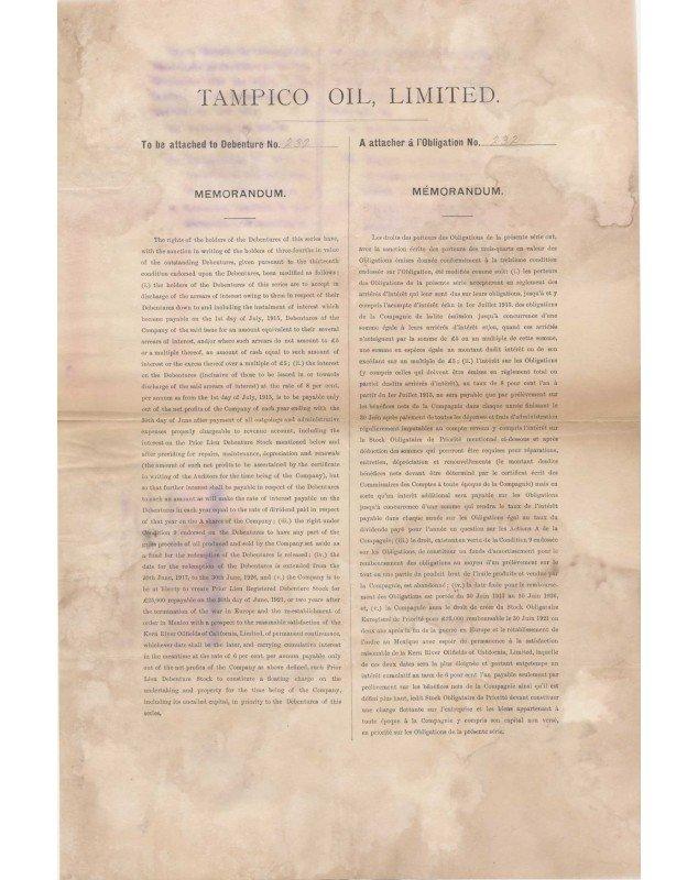 Tampico Oil, Limited - Obligations de Première Hypothèque
