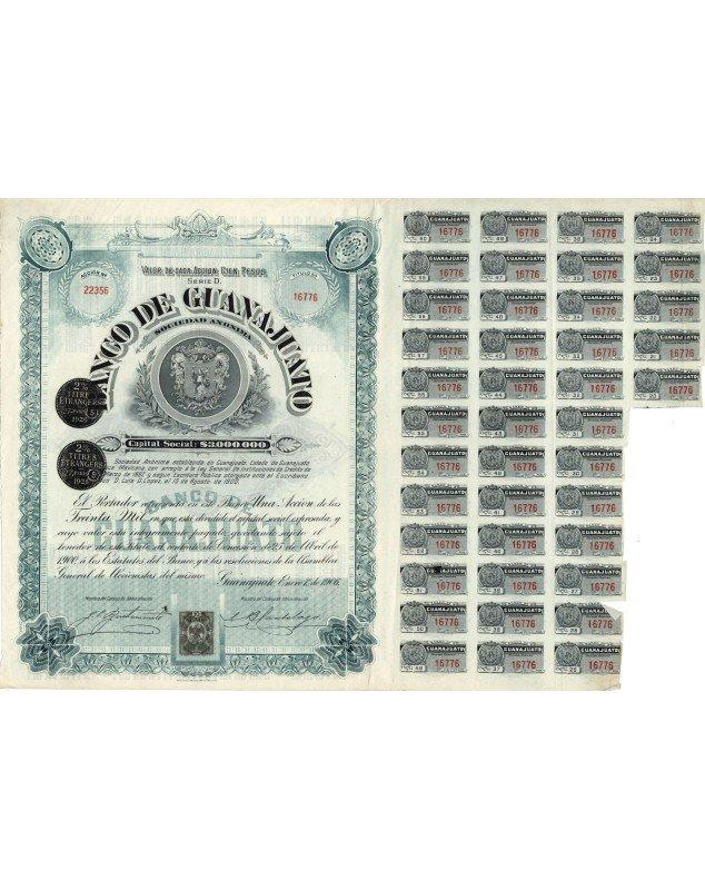Action de 100 Pesos émise à Guanajuato en 1906, Série D.