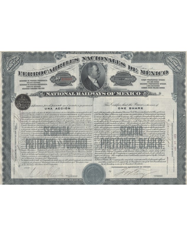 Action de 518 francs ou 248 Guilders ou 100$ Or ou 200 Pesos Or Mexicains au porteur émise à New York 1910 (ou 1915).