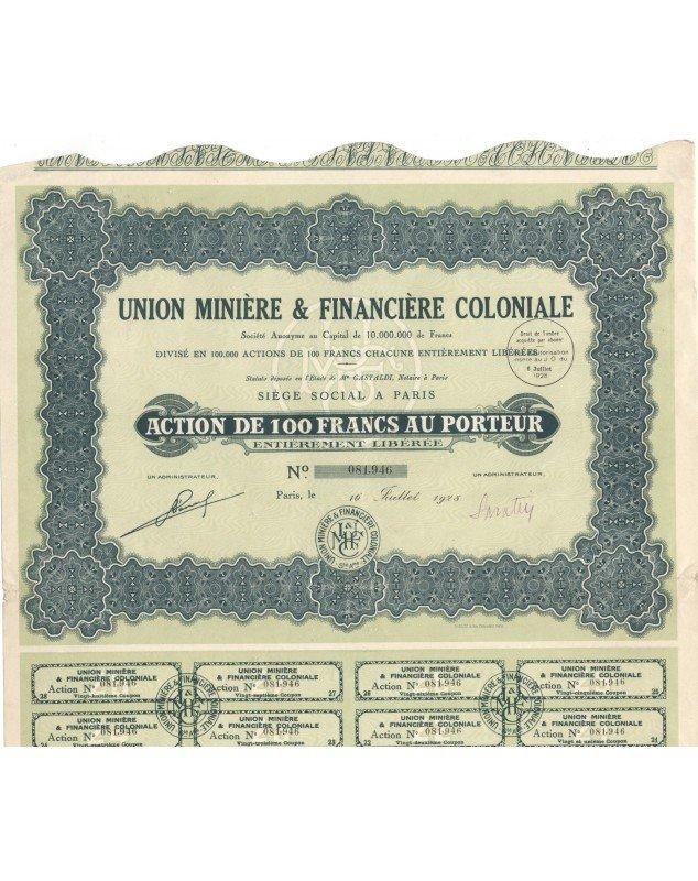 Union Minière & Financière Coloniale. 1928