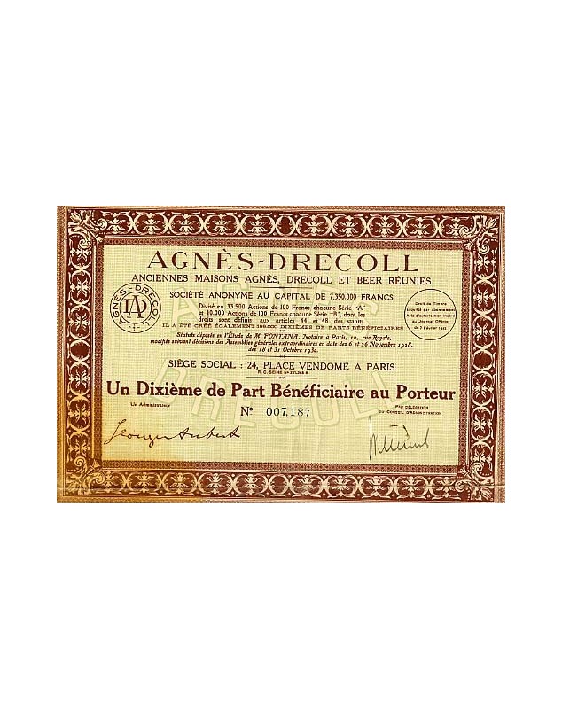 Un 10ème de Part Bénéficiaire - Paris 1930