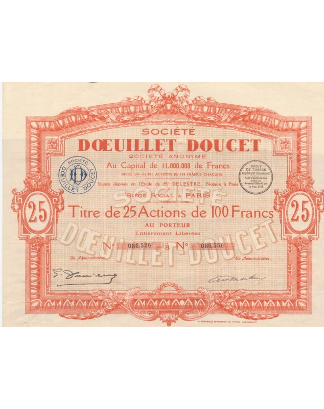 En 1929, la nouvelle maison Dœuillet-Doucet est regroupée au 21 rue de la Paix et déménagera ensuite au 47 rue Pierre-Charron.