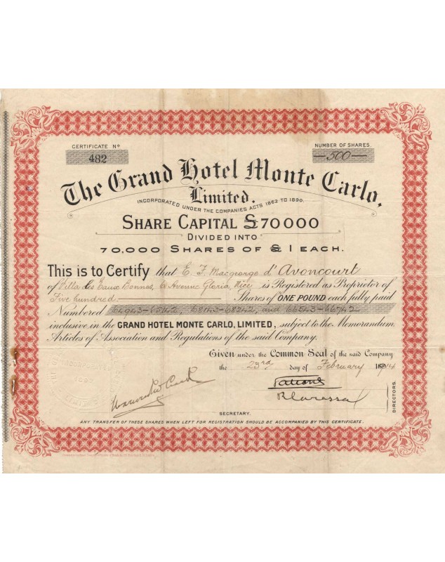 Titre de 500 actions de 1£ chacune - 1914