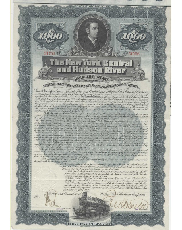 Illustré d'une locomotive et du portrait de Cornelius Vanderbilt Jr. en vignette.