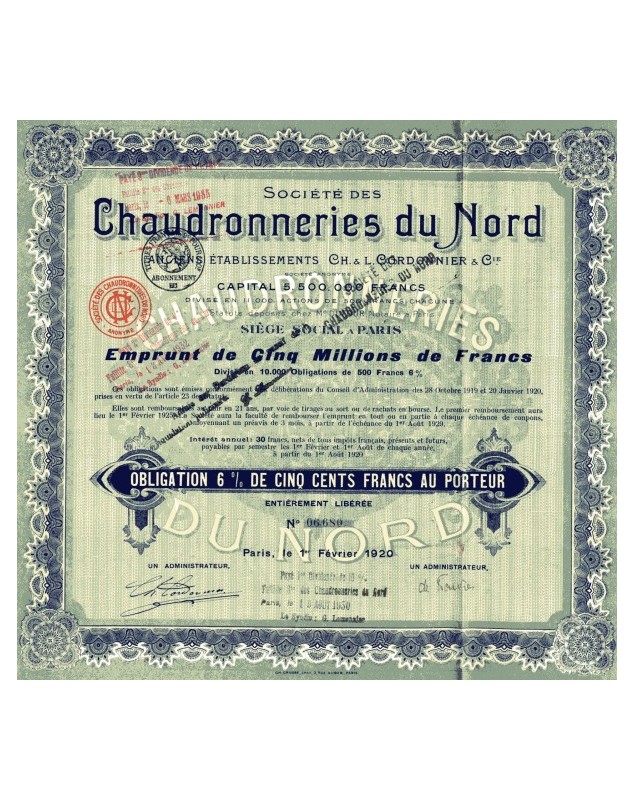 Sté des Chaudronneries du Nord (Anciens Ets Ch. & L. Cordonnier & Cie)