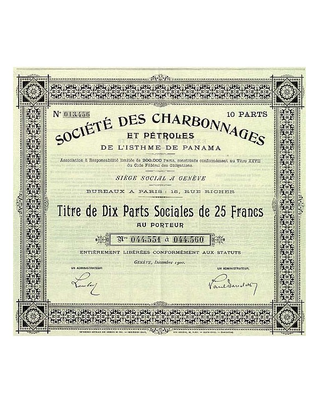 Titre de 10 Parts sociales de 25F - Genève 1900