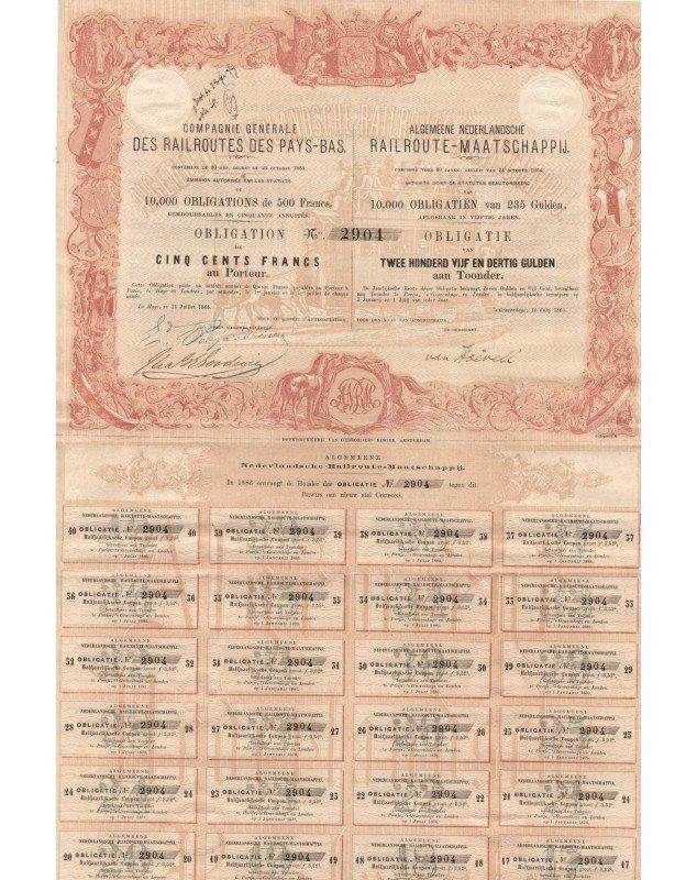Obligation de 500 francs au porteur émise à La Haye en 1865.