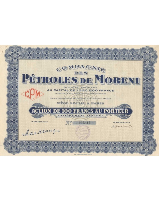 Compagnie des Pétroles de Moreni. 1932