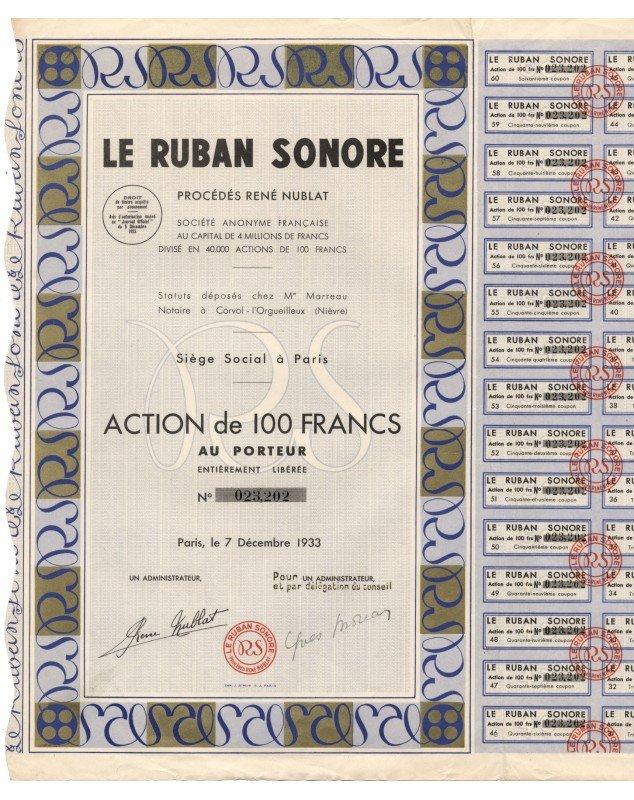 Action de 100 francs au porteur émise à Paris en 1933.