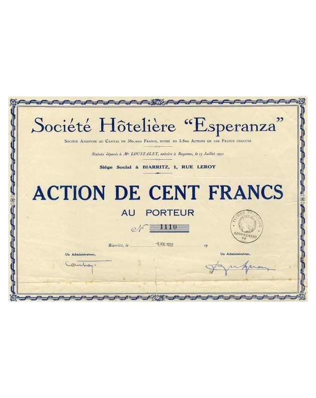 Action de 100F - Biarritz 1932