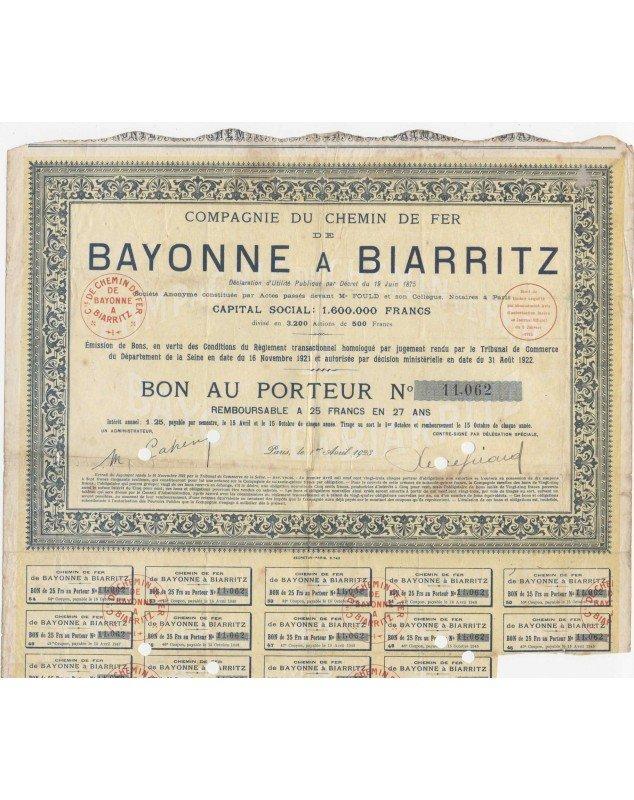 Bon au porteur de 25F - Paris 1923