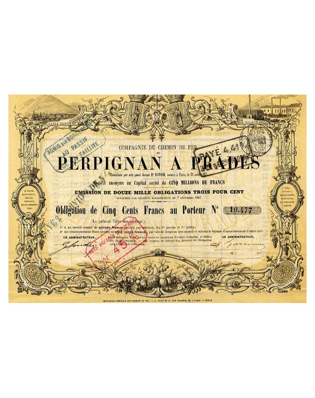 Obligation au porteur de 500 francs émise à Paris en 1867.