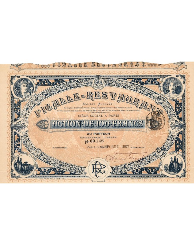 La société sera dissoute en 1908, d'où la présence de tous les coupons sur le titre, puisque la société n'aura pas eu le temps de verser des dividendes. Le directeur fut poursuivi en 1908 pour outrages publics à la pudeur et condamné à un mois de prison avec sursis, ce qui pourrait expliquer la liquidation de la société...