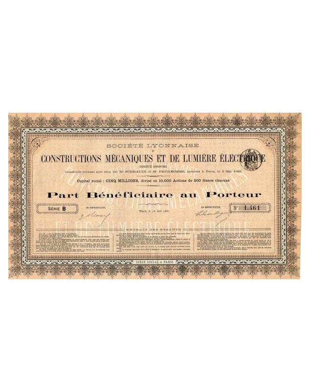 Part Bénéficiaire - Paris 1881