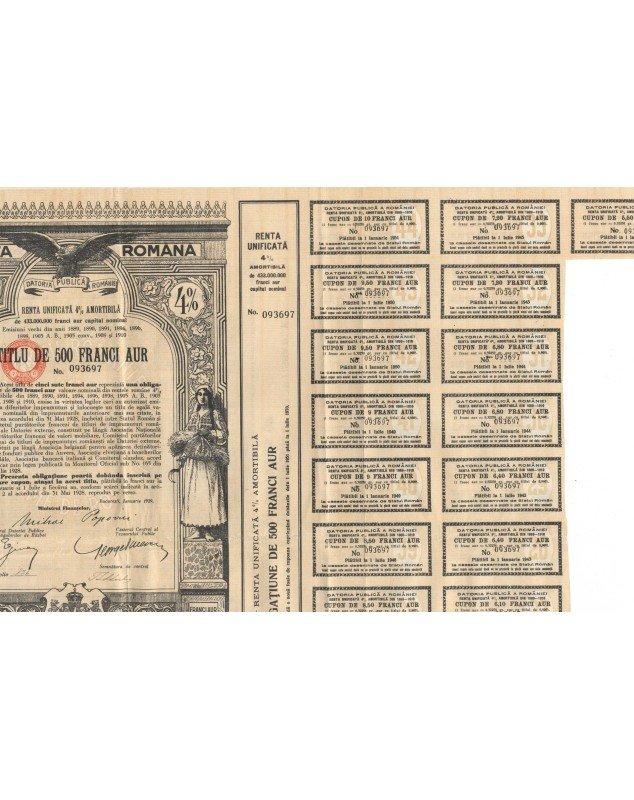 Renta Romana - Dette Publique Roumaine, Rente Unifiée 4% (500F)