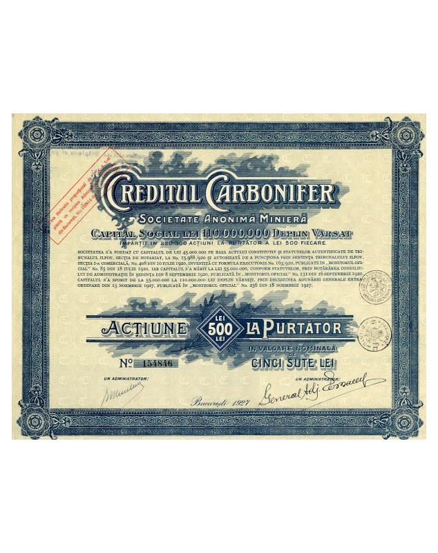 Action de 500 Lei - Bucarest 1927