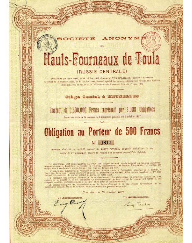 S.A. des Hauts-Fourneaux de Toula (Russie Centrale)