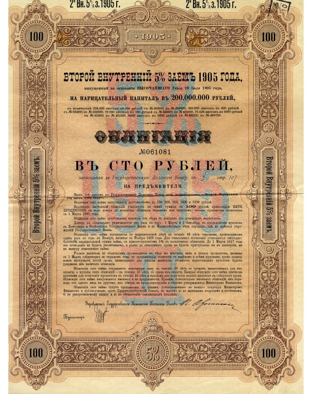 Obligation de 100 Roubles - St-Petersbourg 1905