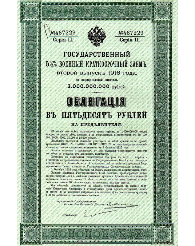 Emprunt militaire russe court-terme 5,5% 1916 - Série II (50 Rbl)