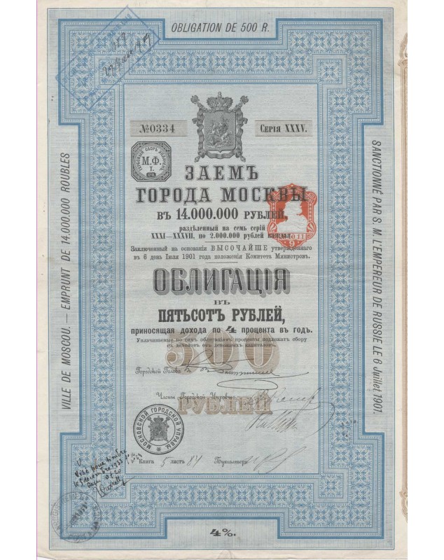 Obligation 4% de 500F - Moscou 1901