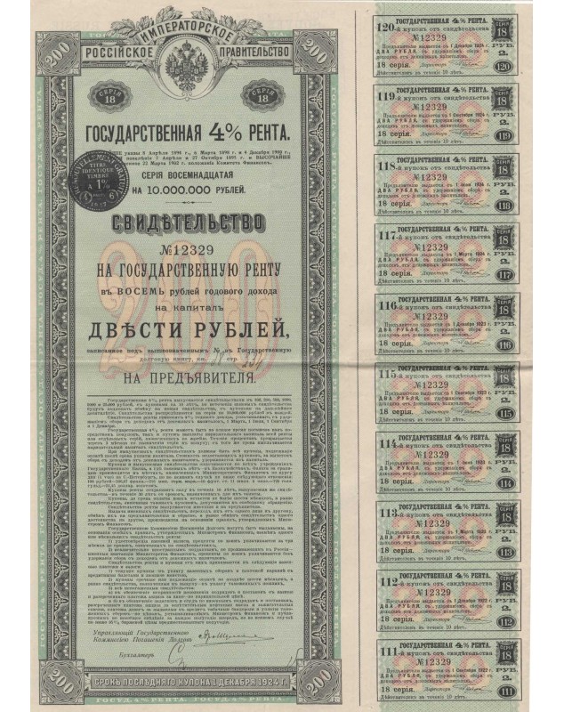 Titre de Rente Russe 4% de 200 Rbl - St Petersbourg 1902