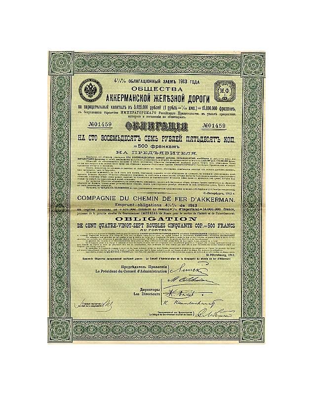 Obligation de 187,50 Rbl (500F) - St Pétersbourg 1913